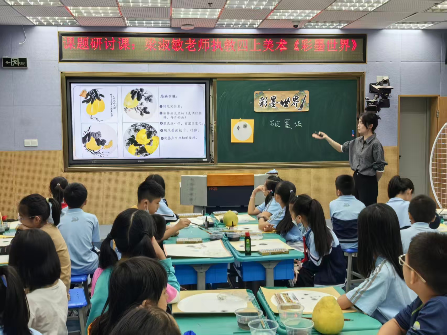 2025年10月21日,我校综合组围绕“学习者中心视域下的小学美术情境教学新样态实践探究”课题,开展梁淑敏老师《彩墨世界》研讨课观摩与课题中期会议,为小学美术教学的情境化、生本化探索注入新活力。 在《彩墨世界》研讨课上,梁老师以莆田本土文化为锚点,巧妙创设“家乡文旅小小宣传官”情境,邀请学生为莆田文旦柚设计彩墨宣传海报。课堂中,通过动态视频展示及笔墨小练习,帮助学生快速掌握中锋、侧锋运用与墨色调配技巧;同时结合大师作品解析破墨法,并借助文旦柚实物观察引导学生将生活元素融入创作。展示环节采用“自主推荐+多维评价”模式,学生在互评互议中实现审美感知与绘画技法的双提升。课后评课环节,参与教师高度肯定课堂情境设计的巧思——将本土文化深度嵌入美术课堂,既化解了技法学习的枯燥感,又充分激发了学生的创作动机;同时也针对“破墨技法探究中如何兼顾不同水平学生”提出优化建议,如增设分层任务卡、完善小组互助形式等。 研讨课结束后,课题中期会议随即召开。课题组首先梳理前期研究成果,随后课题主持人林赛棋作总结发言,并对后续工作提出要求:鼓励课题组成员将“如何设计高驱动性学习情境”作为子课题,在个人下一节课堂中开展实践尝试与教学反思,形成可复制的情境设计经验; 要求各备课组在集体备课中增设“学生差异预设与支持策略”研讨环节,通过提前规划教学支持方案,让“以学习者为中心”的理念真正落地课堂。 会议中,大家围绕这两个核心方向深入交流,既充分肯定了情境创设对激发学生学习动机的积极作用,也坦诚指出当前在技法探究环节中,关照学生个体差异所面临的挑战。这种基于真实课堂观察、兼具理性思考与真诚交流的研讨,正是我校教研活动的核心价值所在。 此次活动以课题为纽带,将课堂实践的鲜活案例与教研研讨的理性思考紧密结合,不仅为后续小学美术情境教学的迭代升级指明了方向,更提供了“学习者中心”理念在美术课堂深度落地的可借鉴实践路径。 (图文:陈轶群 审核:教研室 )