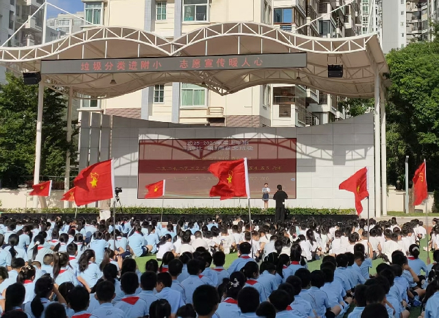 为深化绿色校园建设、树立环保意识,2025年9月莆田市教师进修学院附属小学开展“垃圾分类进校园,志愿宣传暖人心”主题教育活动,全体师生共同参与。 活动中,环保宣传员通过生动的视频演绎垃圾混放的危害,用趣味动画拆解可回收物、厨余垃圾、有害垃圾、其他垃圾的分类标准,让抽象知识变得直观易懂。最后环保宣传员发出倡议,号召大家从随手分一分做起,争当校园环保践行者,现场响应热烈。 此次主题教育活动将垃圾分类知识融入日常教育,不仅让师生掌握了垃圾分类的技巧,更传递了共建清洁校园的责任理念。未来我校将持续开展垃圾分类实践活动,让绿色环保理念扎根校园,助力养成文明生活新风尚。(图文:许小花 审核:总务处)