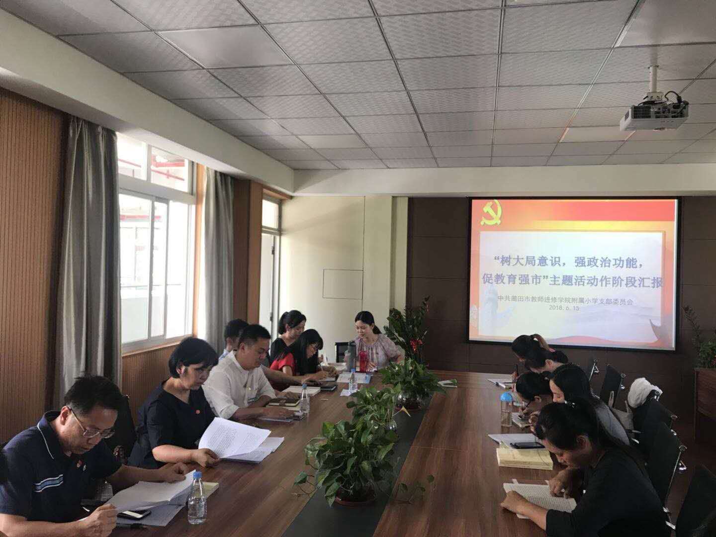 6月16日,莆田市教师进修学院附属小学党支部组织学校全体党员开展了以“树大局意识,强政治功能,促教育强市”为主题的六月份主题党日活动。会议由党支部书记欧争青同志主持,林建华督导参加本次活动。 会上,潘文尾纪检委员传达学习了莆廉责办文件《关于2018年“五一”、端午期间开展“四风”专项督查的通知》,在节前再次引导党员干部增强廉洁自律意识,严守节日纪律防线,要求党员干部尤其是领导干部严格落实中央八项规定和新修订的实施细则精神。薛郁宣传委员组织分发了书籍《习近平新时代中国特色社会主义思想三十讲》并部署了全体党员暑假进行认真自学的学习要求。陈俊锋副书记组织学习了文件《中共莆田市委贯彻落实<中共福建省委关于把党的政治建设摆在首位落深落细落实全面从严治党主体责任的意见>的通知》,就“树大局意识,强政治功能,促教育强市”主题活动作阶段汇报,号召党员同志们要继续增强大局意识,提高政治站位,并加强党支部发挥堡垒作用,为推动新时代莆田发展和教育强市的建设而共同努力。欧争青书记组织学习了教育部牵头制订的文件《推进共建“一带一路”教育行动》,并提出了积极响应习近平总书记“一带一路”的倡议,加强各方交流学习,不断提升自身党性及教学业务能力,实现教育强市这一美好愿景。 在现场缴纳了党费完成规定动作后,组织全体党员及部分优秀少先队员们前往市图书馆参观刘海翔骑行“一带一路”摄影展。大家认真聆听着刘海翔的精彩讲解,跟随“超人”的脚步了解海上丝绸之路的国土人情以及骑行路上的艰辛与收获。在听讲的过程中,我们不时为这位致公党员追梦路上坚持不懈的精神发出阵阵赞叹。而作为践行“一带一路”倡议的中国民间第一人,他的所思所悟也让我们更好地理解了习总书记提出一带一路倡议的意义。 通过本次活动,党员同志们收获良多,大家纷纷表示将“一带一路”丝路精神融入日常的教学工作生活中,向走在这条路上的先锋们学习,做一个知行合一的合格党员,为美丽莆田与教育强市建设发挥一名党员应有的模范带头作用。