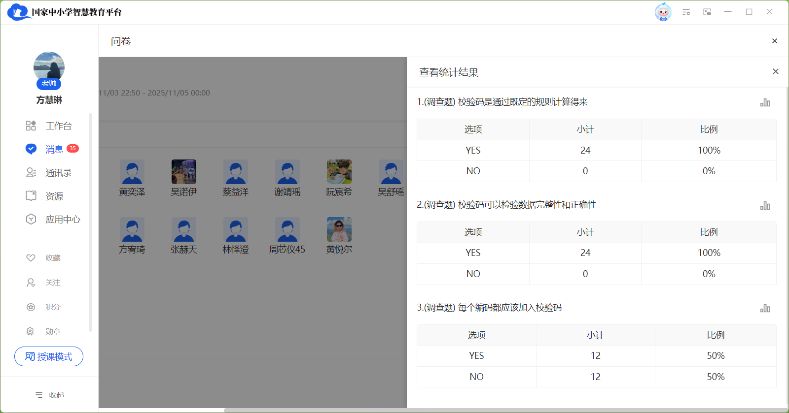 2025年11月4日上午,以省级课题《数据支持下学习评价的教学案例研究》为核心的教学研讨活动顺利举行,本次活动聚焦义务教育四年级信息科技第10课《数据错误及时验》,依托AI智慧教室平板电脑终端,探索数据支持下的学习评价新路径,来自第十三教研片区的全体信息科技教师、课题组成员参与本次活动。活动以课程核心的“数据校验”知识为载体,将课题研究与课堂教学深度融合,为信息科技教学创新提供了实践范例。 研讨活动中,方慧琳老师以“身份证校验位”真实情境切入,借助AI智慧教室平板电脑终端开展互动教学。课堂上,学生通过平板参与“方格奇兵”探究游戏,实时上传学习成果;方老师则灵活运用国家中小学智慧平台的调查问卷功能,发布课前、课中、课后测评,快速收集学生对校验码的概念、校验规则的理解数据,根据平台即时生成的正答率统计结果,精准掌握学生对“校验码依据规则生成” 这一重点的掌握情况,及时调整教学节奏,实现“以学定教”的动态评价。 本次研讨创新采用“线上直播+智慧平台研修”模式,实现了跨区域教师观摩与互动交流。课后,与会老师围绕“数据如何支撑教学决策”“校验码教学的生活化迁移”等议题展开了讨论与点评。活动主持人及指导老师张媛媛指出,本节课不仅是技术工具的应用示范,更是数据赋能教学评价的典型实践,为课题研究提供了可复制、可推广的课堂模型。 未来,课题组将继续深化数据在教学评价中的应用,推动信息技术与学科教学的有机融合,助力教师专业成长与课堂教学提质增效。(图文:张媛媛 审核:教研室)