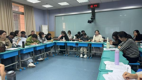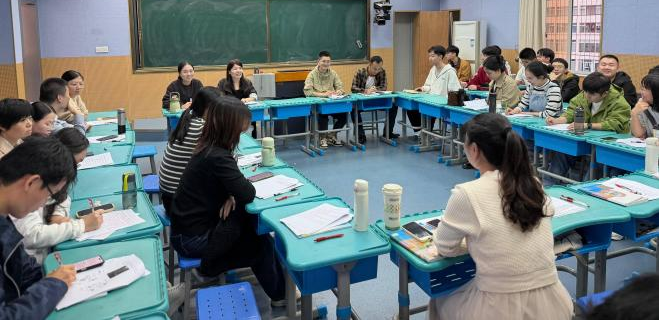 寒意渐浓,初冬暖阳为校园添了几分温润。为深化教育内涵,提升教学品质,推动课题研究的开展,2025年11月12日下午,我校数学组全体教师齐聚六楼录播室,开展省级课题《大单元视域下问题链的设计与实践研究》研讨活动。李志香老师紧扣课题理念,为老师们带来一节精彩的研讨课---《角的度量》。 课始,李老师以亚冬会速滑“身体与冰面夹角”为情境,抛出“仅靠观察能精准判角的大小吗?”“精准量角需先解决什么问题?”,迅速唤醒学生探究欲。课中,问题链层层推进,先从“画心中的角单位,量角会遇何问题?”引导动手尝试,以“为何统一用1°作单位?”让学生理解统一标准的必要性;再通过“怎样工具量角更高效?”“量角器刻度与1°有何关联?”,助力学生推导工具原理,明晰量角器是1°角的物化延伸;后续以“‘点点重合、线边重合’为何重要?”强化操作逻辑,结合不同开口的角打破思维定式,让学生在实操与思辨中掌握技能,领悟“度量本质是单位累加”的核心。最后通过引导学生思考“角与长度、面积度量有何共通?”帮助学生构建度量知识体系;而“滑梯坡度、读书姿势中角的作用是什么?”则让数学回归生活,强化应用意识。整节课以问题链串联全程,将课题理念融入教学细节,既让学生扎实掌握量角技能,又发展了量感与推理意识,为大单元教学研究积累了鲜活实践经验。 一节研讨课,一场思维碰撞;一次深度交流,一份成长收获。此次课题研讨活动,不仅为我校教师提供了展示与交流的舞台,更推动课题研究从“理论层面”走向“实践深耕”。我校将以此次活动为新起点,推动课题研究与日常教学同频共振,引导教师在“研教融合”中稳步前行,让每一次研讨都成为课堂提质的坚实台阶。(文字:陈曼凌 图片:游礼琴 审核:教研室)