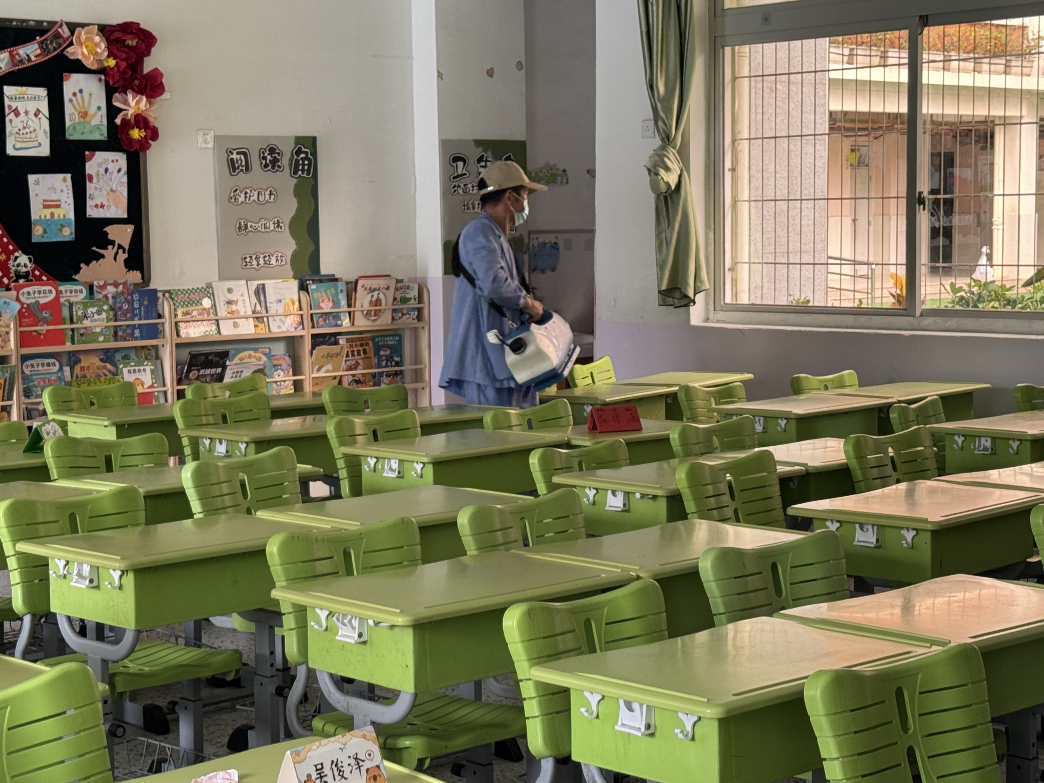 为筑牢校园健康防线,国庆假期前夕,我校联合城厢区消杀站开展全方位蚊虫消杀行动,覆盖各班级、校园角落及花草区域,以整洁环境迎接假期后师生返校。 消杀工作以“精准覆盖、重点攻坚”为原则。城厢区消杀站专业团队与我校后勤人员分工协作,先对全校环境排查,锁定蚊虫易孳生点位:各班级教室内,采用低毒环保药剂对地面、窗台、讲台缝隙喷洒;校园角落重点清理下水道、垃圾桶周边、围墙缝隙等卫生死角;花草绿植区域则针对性喷洒蚊虫趋避剂,同时清除枯枝落叶与隐蔽积水,从源头减少孳生环境。 此次行动累计完成68间教室及500余平方米绿植区消杀。专业消杀与细致清洁结合,有效降低蚊虫密度。下一步,我校将联合消杀站建立常态化巡查机制,为师生营造更安全的校园环境。(文字:吴丽香图片:吴丽香 审核:总务处)